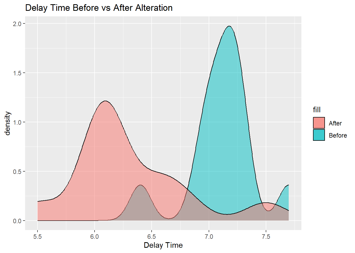 xlab("Delay Time")Warning: Removed 1 rows containing non-finite values (`stat_density()`).